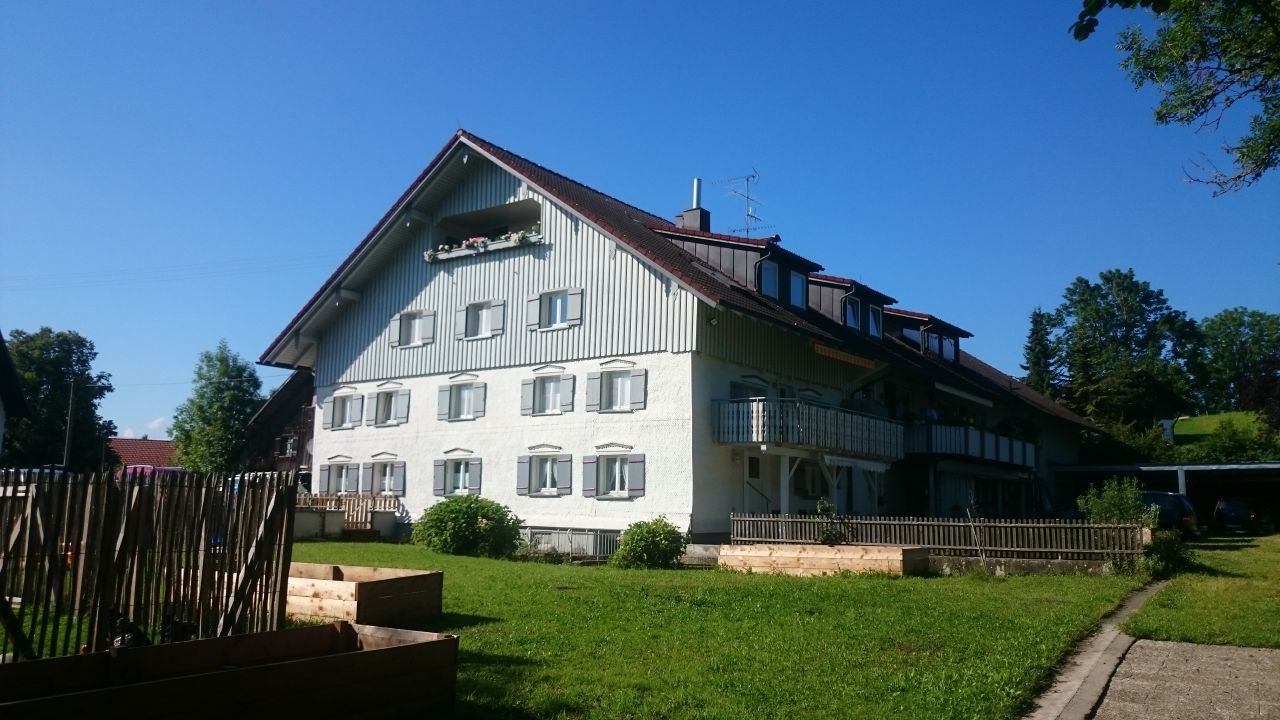 In einem gemeinschaftlichen Wohnprojekt auf einem ehemaligen Bauernhof im Allgäu mit insgesamt 11 Wohnteilen stehen noch zwei große Wohnungen zum Verkauf. Whg 5: Maisonette, vier Zimmer, überdachter Balkon, großes Wohnzimmer, 169 qm, Kaufpreis: 560.000 Euro Whg 4: Drei Zimmer, zwei große Bäder (wovon eines der beiden Bäder in ein weiteres Zimmer umgewandelt werden kann), überdachter Balkon, Ankleidezimmer, Dachboden noch ausbaubar, 124 qm, Kaufpreis: 410.000 Euro Das Anwesen befindet sich auf einem kleinen Berg im Westallgäu, umgeben von saftigen Wiesen, auf ca. 750 Höhenmetern. Der große Garten ermöglicht einen gemeinschaftlichen Gemüseanbau und die Haltung von Tieren. Es gibt ein Gemeinschaftshaus mit Pizza- und Brotbackofen im Garten. Näheres zu den noch verfügbaren Wohnungen gerne per Email oder Telefon. Glasfaserinternet ist bis zu 1000 mbit/s mögich.